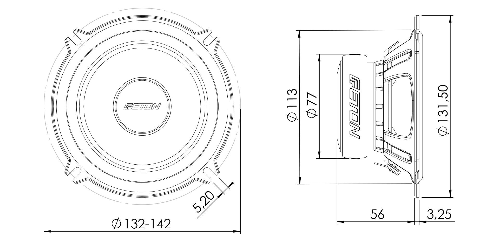 130 mm (5 inch) 2-way component system with fiberglass-paper sandwich diaphragm. 25 mm fabric tweeter with cable crossovers. Powder coated metal basket with slotted holes for optimal mounting with strong ferrite magnet, 3 ohm impedance, 60 W RMS, 100 W music power handling, 91 dB characteristic sound pressure, includes tweeter insertion & mounting accessories. Made in Germany.